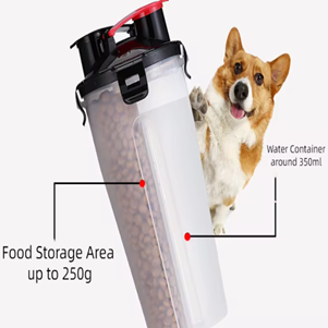 Juego de botellas de agua para perros de viaje incluye un recipiente de agua y comida y un cuenco plegable con clips de mosquetón. Adecuado para perros y gatos pequeños y medianos. Hecho con materiales de polipropileno y TPE de grado alimenticio, duraderos y reutilizables. Incluye hebilla de metal para fácil transporte.